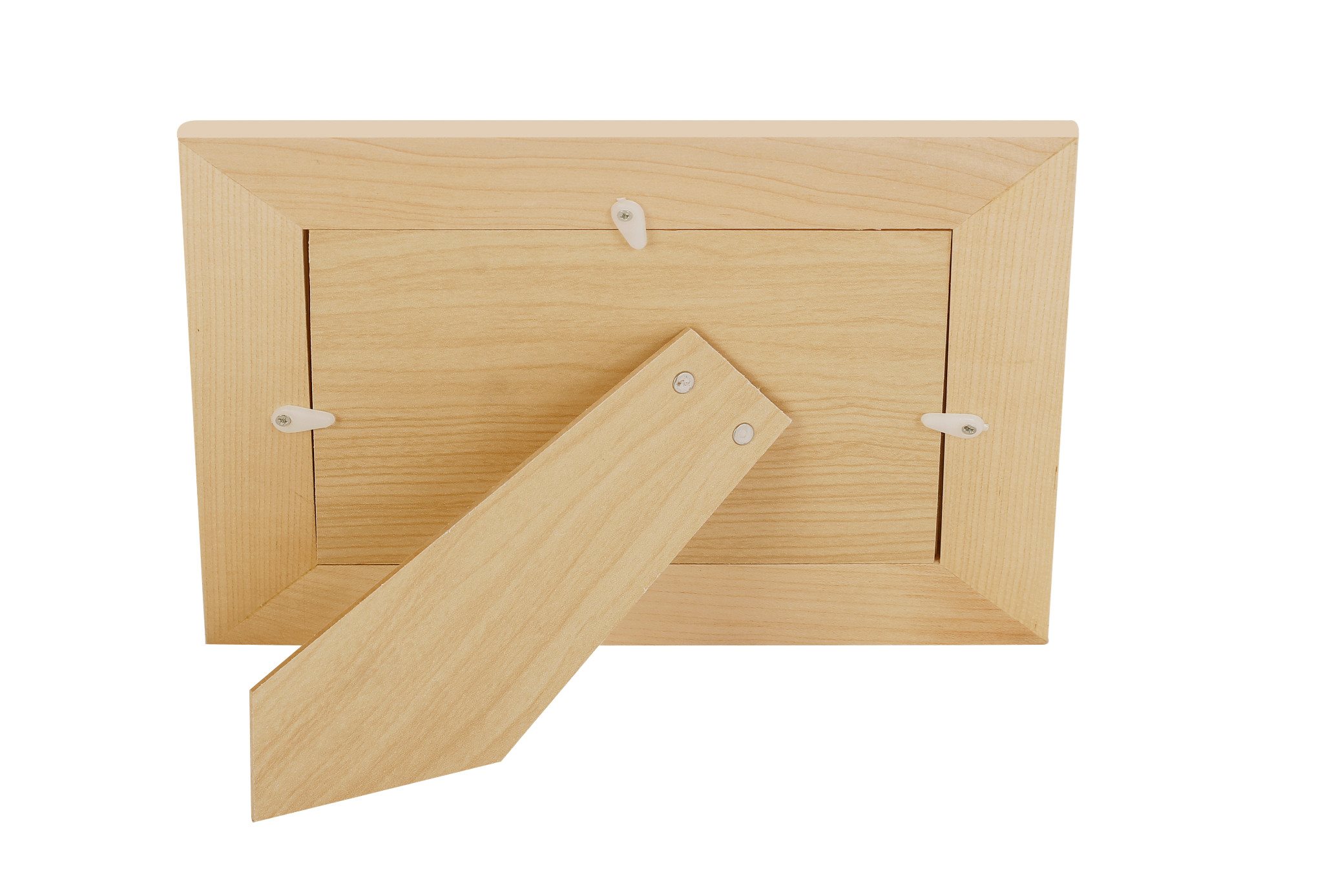 - Vách lưng và chân đế làm bằng ván MDF được dán giấy để tăng tính mỹ thuật và bảo vệ vách lưng khỏi ẩm mốc. Bạn có thể đặt khung ảnh trang trí trên bàn hoặc treo tường.