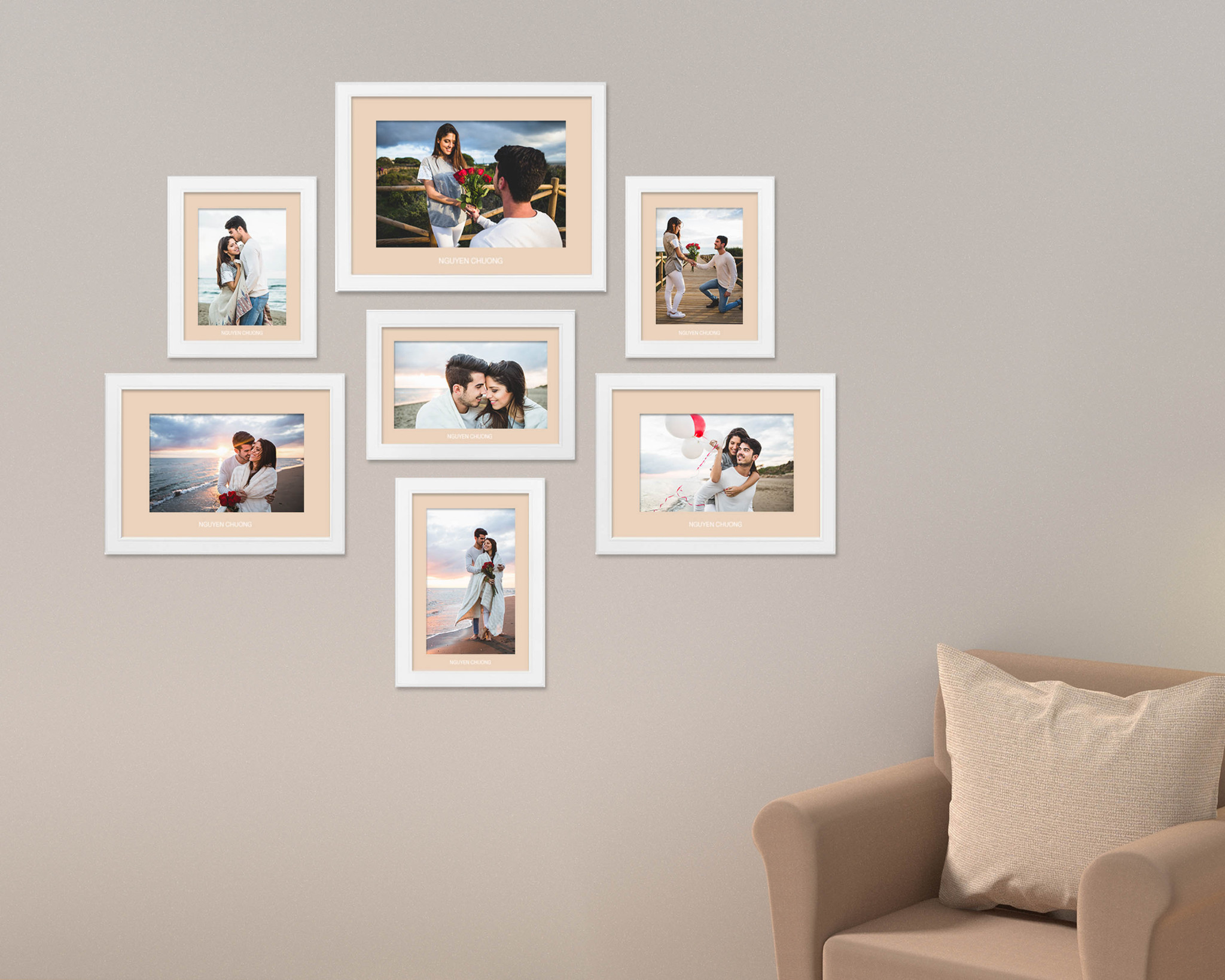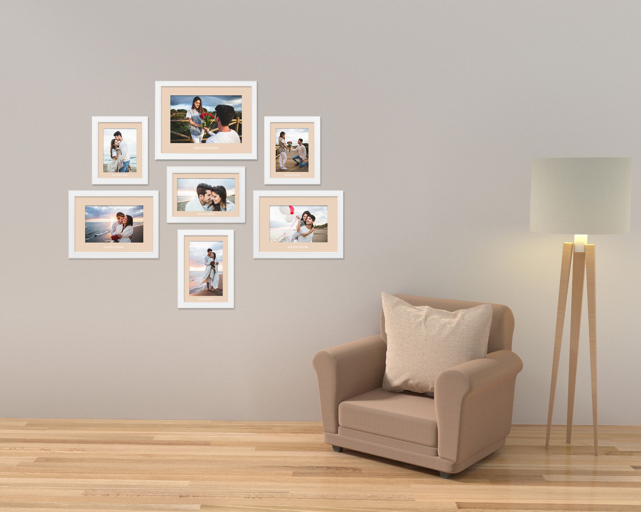 Khung hình bộ NCFRAME cao cấp màu trắng, phù hợp với mọi phong cách nội thất trong nhà bạn. Giúp bạn trang trí nhà cửa, lưu giữ kỷ niệm, khoảnh khắc đẹp về gia đình, tình yêu hoặc các sự kiện trọng đại khác trong cuộc sống. Tổng kích thước trang trí trên tường là 103 cm (cao) x 121,2 cm (ngang).