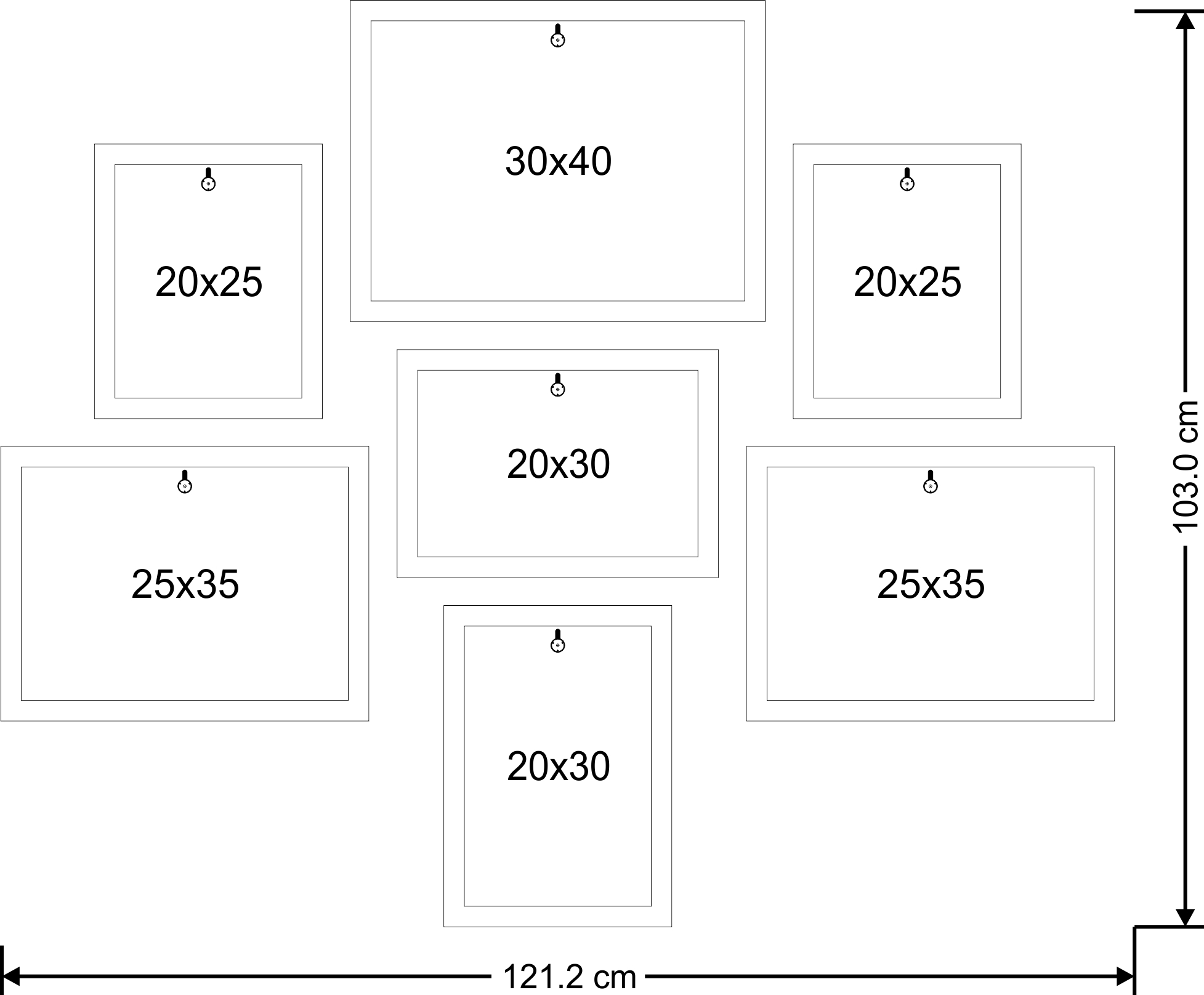 - 01 Bảng vẽ định vị khung hình: là sơ đồ giúp bạn xác định vị trí đinh treo tường dễ dàng.